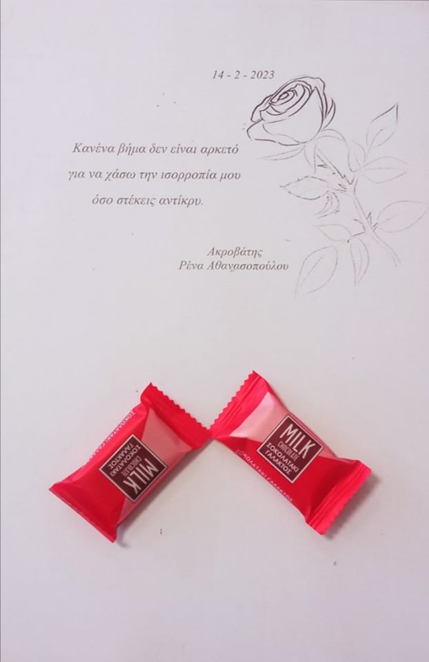 Κάθε χρόνο μια καθηγήτρια από τη Βέροια προσφέρει σε όλους τους συναδέλφους τυπωμένο το στίχο ενός ποιήματος μαζί με γλυκάκια. Φέτος, μετά τη βιβλιοπαρουσίαση της συλλογής "Τάσεις φυγής σε παράλληλο σύμπαν" στη Βέροια όπου και παρευρέθηκε, επέλεξε τον "Ακροβάτη", γεγονός ιδιαίτερα τιμητικό και συγκινητικό.