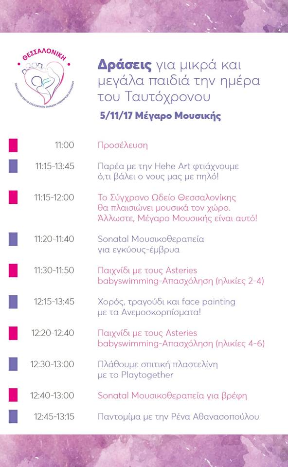 Το Πανελλήνιο Δίκτυο Εθελοντικών Ομάδων Υποστήριξης Μητρικού Θηλασμού και Μητρότητας, την Κυριακή 5 Νοεμβρίου 2017 διοργανώνει μια εκδήλωση - γιορτή για το μητρικό θηλασμό, τον Πανελλαδικό Ταυτόχρονο Δημόσιο Θηλασμό.